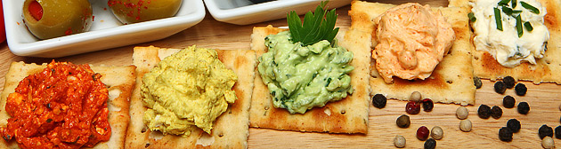 Wir bieten mehr als zehn verschiedene frische, leckere Käsebrotaufstriche und Dipps.